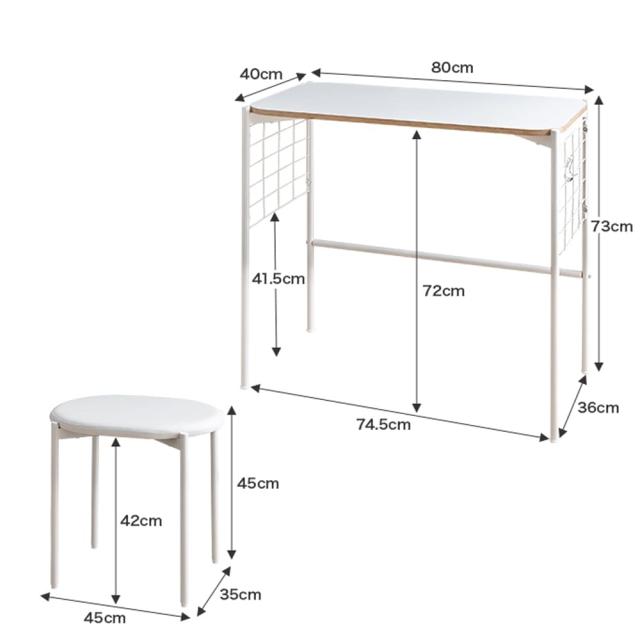 ■ デスク本体サイズ: 幅 80cm × 奥行 40cm × 高さ 73cm