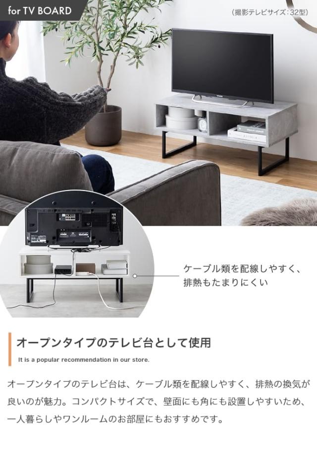 テレビボードとして使えば、幅80cmの天板が32インチまでのテレビに対応し、ケーブル類の整理がしやすいオープン仕様で便利。