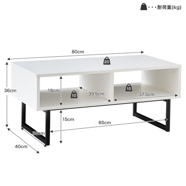 耐荷重: 天板 約20kg、棚 約10kg