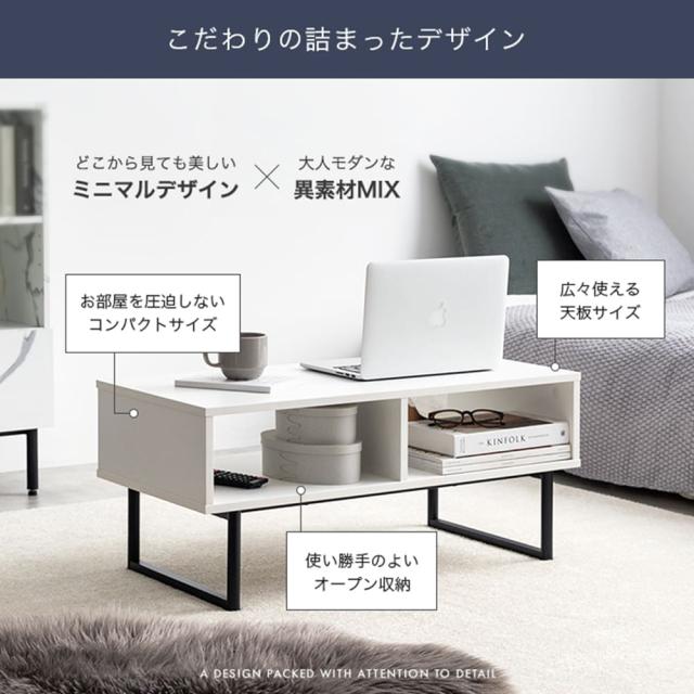 また、センターテーブルとしても十分な広さを持ち、雑誌やリモコン、小物類をすっきり収納できます。