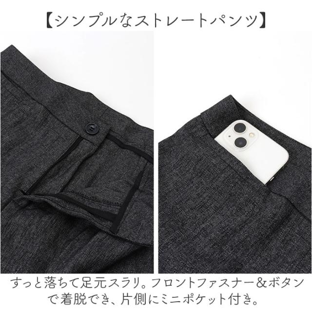 | 商品説明 | 【通勤やフォーマルシーンで活躍】 ・使い勝手の良いベーシックデザイン。長く愛用できる、レディース用「ビジネススーツ」。 【上品なキレイめスタイルが完成】 ・シンプルできちんと感のあるジャケット&パンツ。年代問わず着用しやすい仕上がり。 【すっきりフォルムのジャケット】 ・肩パッドでシルエットをキープ&エレガントなラペルデザイン。スリムに魅せる絶妙な仕立て♪ 【ベーシックなシングルタイプ】 ・フロントボタンを1つ配置し、スマートな印象を演出。左右にはフラップポケットを。 (※)ポケットはご自身で糸を取ってご使用ください。胸ポケットはフェイクです。 【シンプルなストレートパンツ】 ・すっと落ちて足元スラリ。フロントファスナー&ボタンで着脱でき、片側にミニポケット付き。 【ロングシーズン使える万能アイテム】 ・薄すぎず厚すぎない程よい生地感。ジャケットは裏地付で着用時のムレを軽減、摩擦からも保護。 【インナー次第でおしゃれ上級者♪】 ・デザイン性のあるブラウスなどで遊べば、グンと垢抜け!シーンに合わせて楽しめる☆ 【お子さまの学校行事にもおすすめ】 ・フォーマルシーンにも馴染むデザイン。お子さまの入学・卒業式への参加もOK! |