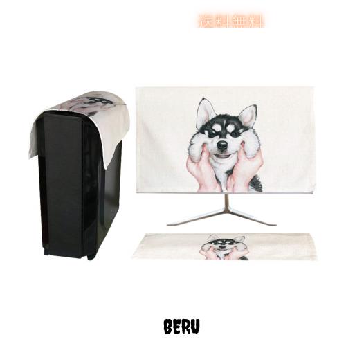 HIGHAWKモニターカバー セット PCカバー ディスプレイ キーボードカバー 防塵 保護 液晶 可愛い(犬 24インチ)