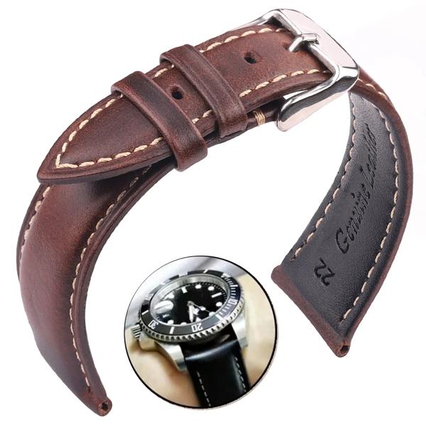 手作りの本革時計バンド,ビンテージスタイルのスチールピンバックル,ブラック,ダークブラウン,18mm, 19mm, 20mm, 21mm, 22mm, 24mm