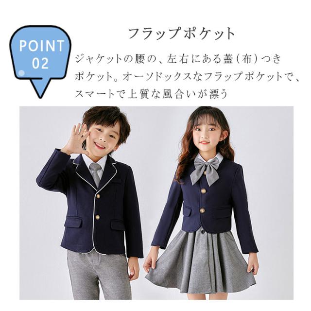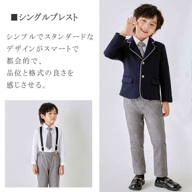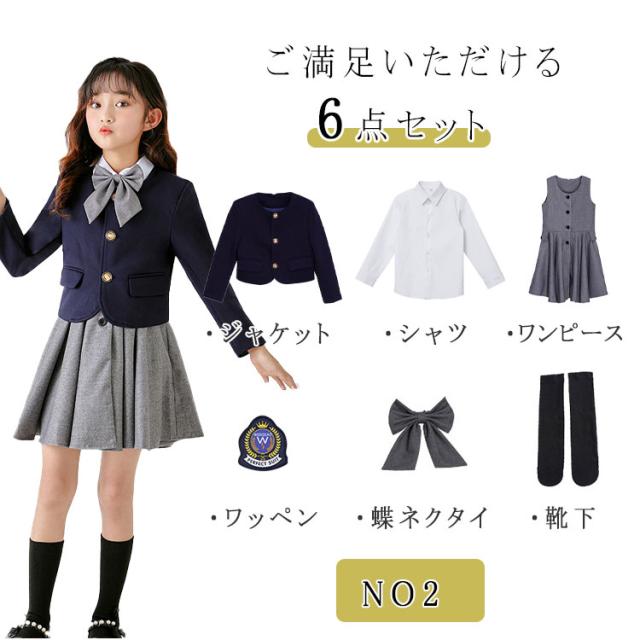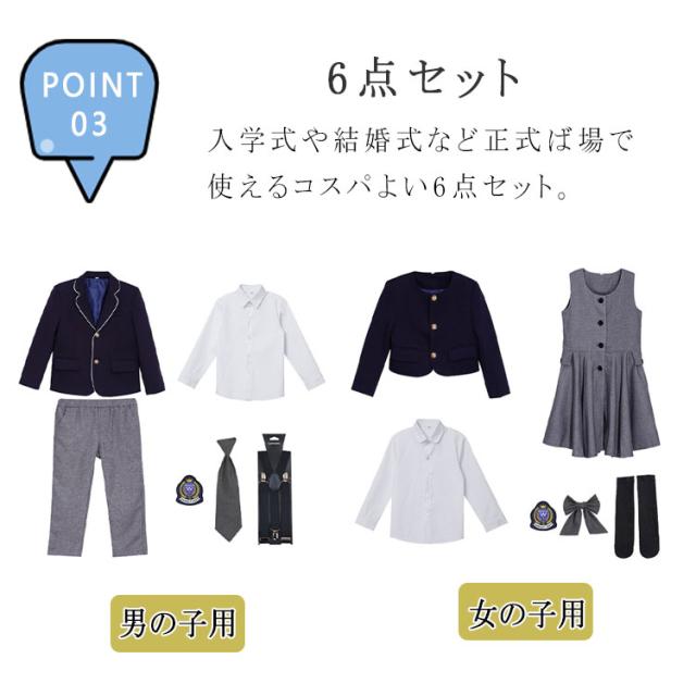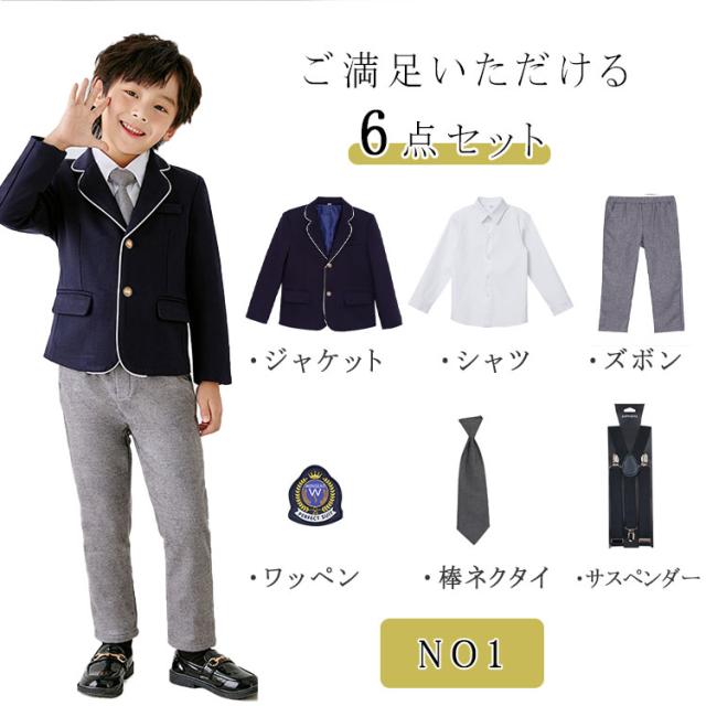 子供服 フォーマル キッズ 入学式 卒業式 スーツ 6点セット 男の子用 ジャケット ズボン シャツ 棒ネクタイ サスペンダー ワッペン 女の子用 ジャケット ワンピース シャツ リボンタイ 靴下 ワッペン 100 110 120 130 140 150 160 170 180