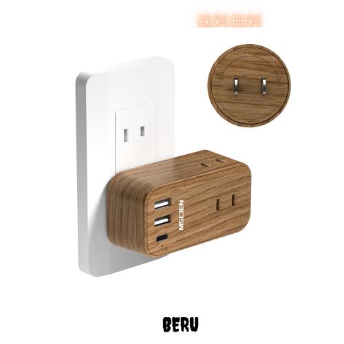 MSCIEN 電源タップ コンセント USB付き タイプC 木目 回転 3個AC差込口 1個USB-Cポート 2個USB-Aポート たこあしコンセント 向き変換 分