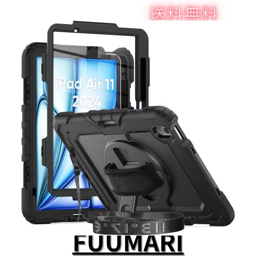 TSQ iPad Air 11 ケース 2024 M2 iPad Air 6 世代 ケース 2024 保護 フィルム付き肩掛けー ショルダー A2902/A2903 耐衝撃 衝撃吸収 スタンド ハンドストラップ ストラップ 回転 頑丈 仕事用 防塵 傷つけ防止 ハード 子供 キッズ アイパッド 第六世代 11 インチ カバー ブラック