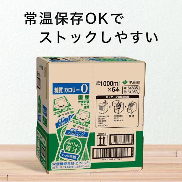 伊藤園 毎日1杯の青汁 すっきり無糖 1L 紙パック 6本入り 1ケース 送料無料!!(北海道別途700円、沖縄県配送不可) / 野菜 青汁 無糖 1000ml