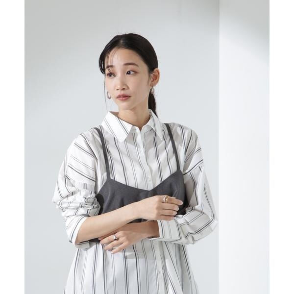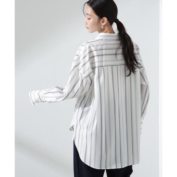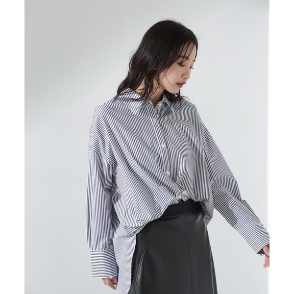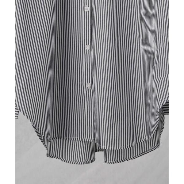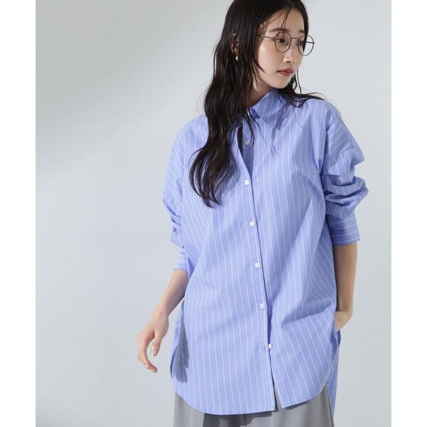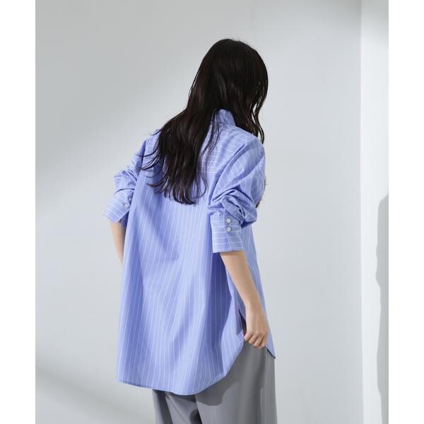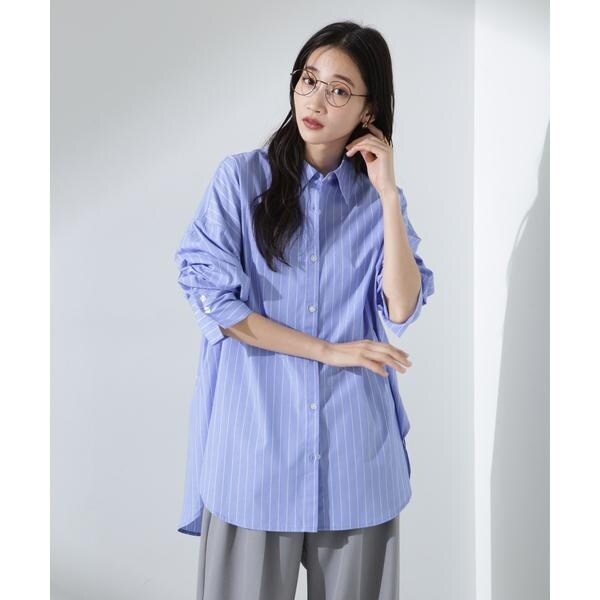 程良いサイズでリラックス感のあるベーシックシャツ。 長めのカフスや大きすぎない衿元で、ルーズな見た目ながらもきちんと様になるデザイン。 シアーインナーなどと合わせて、羽織としてのスタイリングもおすすめです。