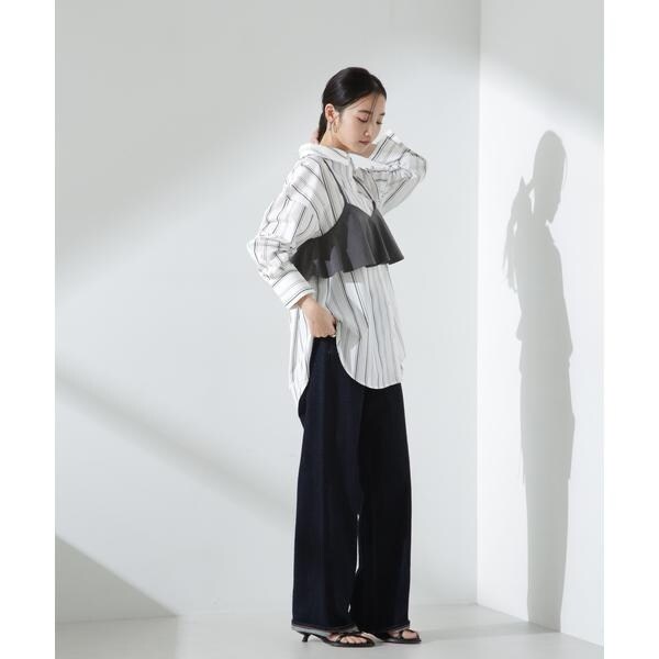 ・前開きでキャミソールやシアータートルを合わせてヘルシー見えするスタイリングがおすすめ◎
