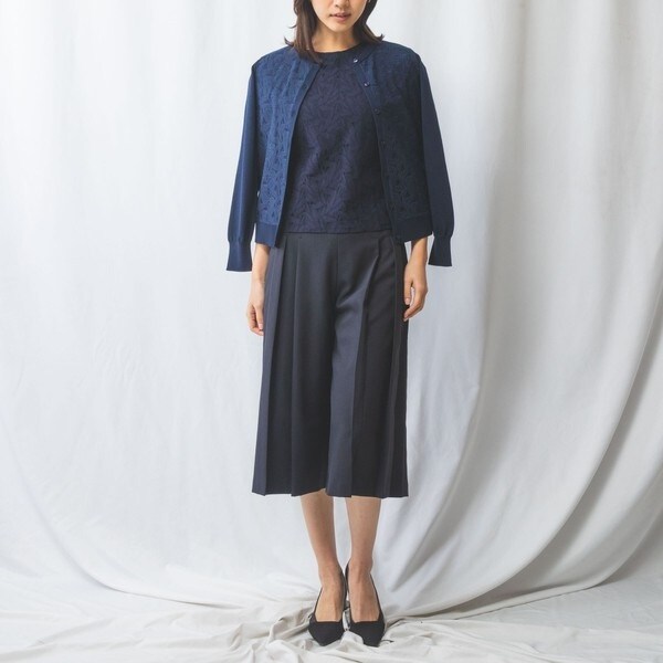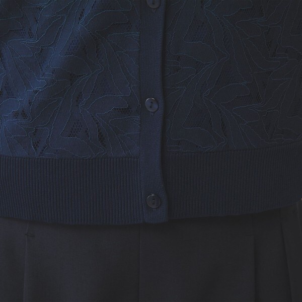 繊細なレースコンビでエレガントなムードを漂わせるニットカーディガン。新しいレース素材でデザインをアップデート。華美過ぎない上品なレースは大人の女性らしさを演出してくれます。カラーはトレンドのグリーン系からブルー系のグラデーションで展開。ベーシックなシルエットでスタイリングにも取り入れやすく、オンオフ問わずに活躍してくれます。同じレースを使用したカットソーとアンサンブルで着用するのもおすすめです。