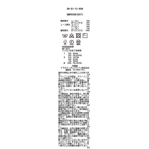 ■素材:ブラック/グリーン/ネイビー:編地部分、レーヨン53%、ポリエステル47%、レース部分、コットン51%、ナイロン36%、レーヨン13%、織地部分、ポリエステル100%