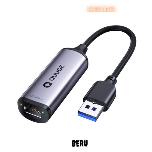 QUUGE 有線LANアダプター USB LAN 変換アダプター 1Gbe高速通信 USB3.0 to RJ45 変換 一発認識 アルミ外殻 Switch 有線LAN イーサネット