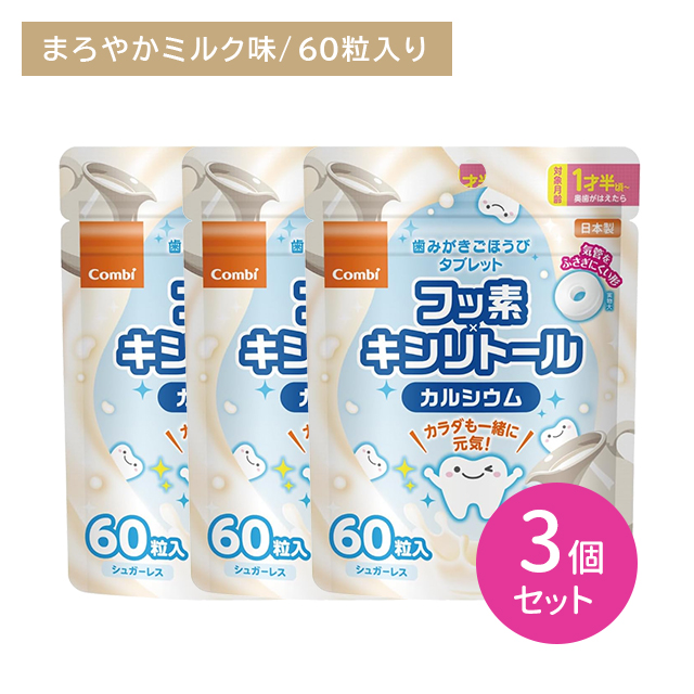 【3個セット】歯みがきごほうびタブレット 60粒 まろやかミルク味 オーラルケア 口内ケア 歯みがき後 お出かけ フッ素 キシリトール配合 カルシウム 子供 キッズ 乳幼児