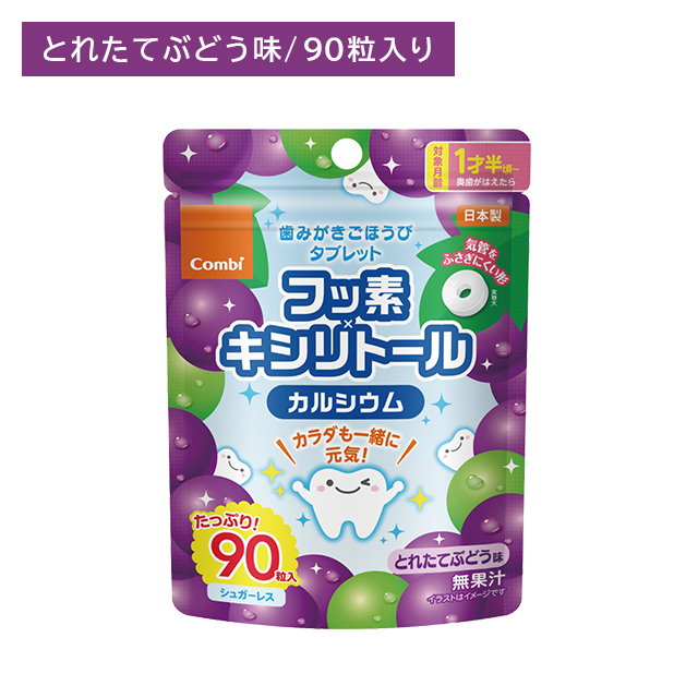 歯みがきごほうびタブレット 90粒 ぶどう味 オーラルケア 口内ケア 歯みがき後 お出かけ フッ素 キシリトール配合 カルシウム 子供 キッズ 乳幼児
