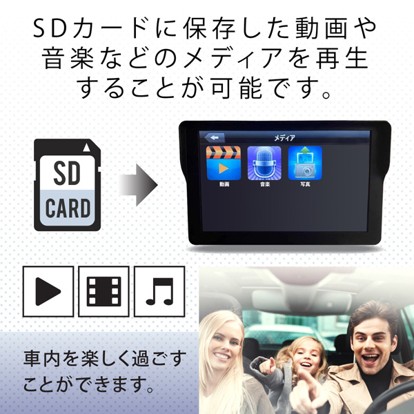 SDカードに保存した動画や音楽などのメディア再生することが可能です。