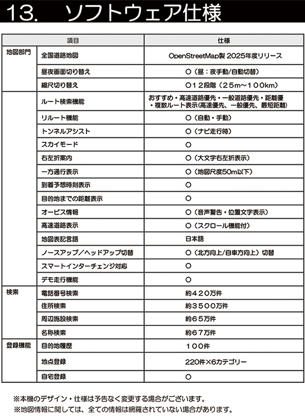 地図の更新は本製品は発表後の翌年から年1回、計2回まで。(毎年春〜夏頃)
