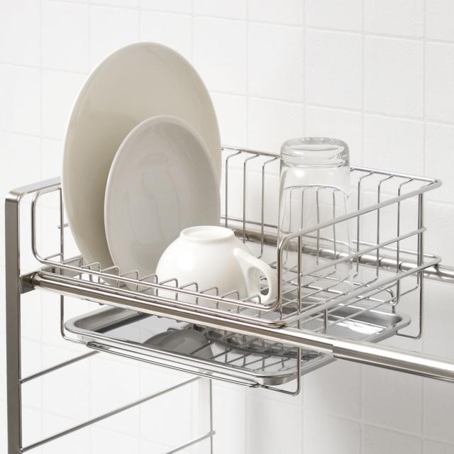 ベースラックと組み合わせて使用するのはもちろん、水切りバスケットのみで使用することもできます。食洗機に入れられない食器類を乾かす、サブ水切りにもおすすめです。