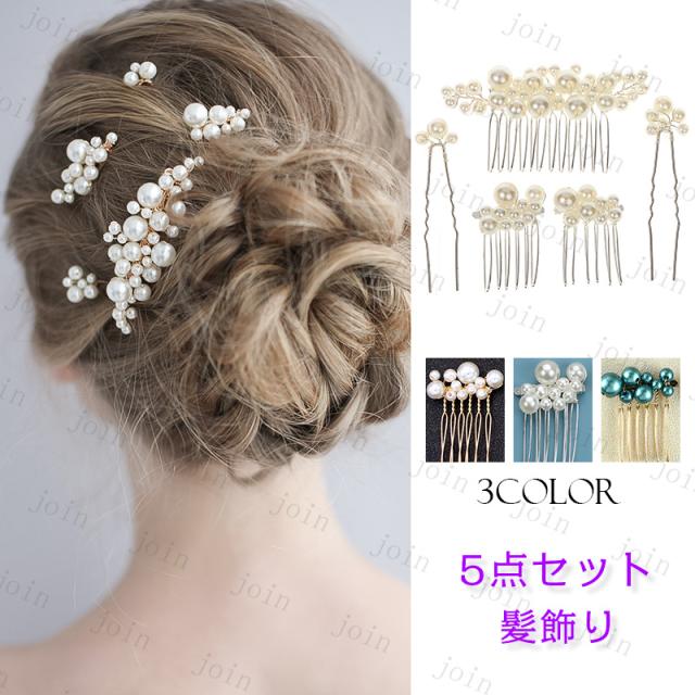h167#ヘアアクセサリー 5点セット 当日発送 3color ヘアコーム Uピン レディース 女性用 フェイクパール ヘアアレンジ まとめ髪 上品 おしゃれ 髪飾り 卒業式