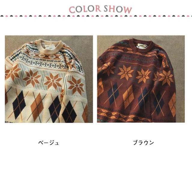 ノルディック柄 ニット セーター メンズ 長袖 ニットセーター カジュアル 暖かい レディース 幾何柄 ニット トップス ゆったり 大きいサイズ 体型カバー カップル M L XL 2XL