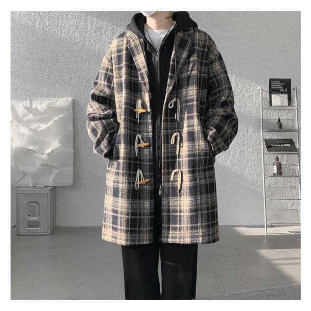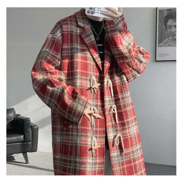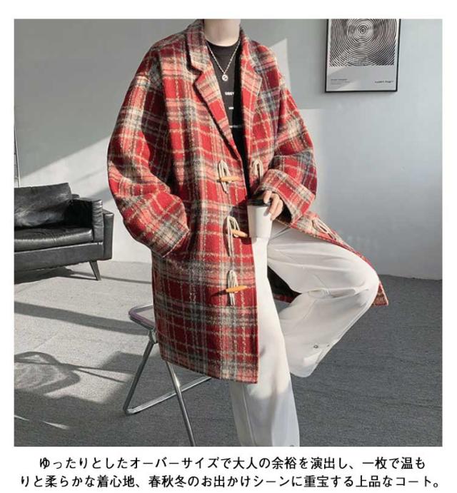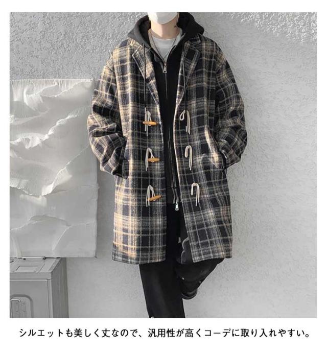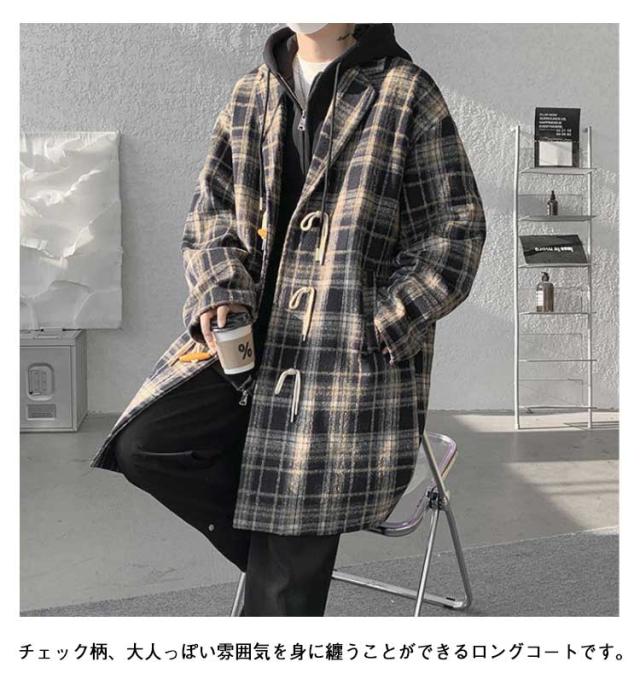 トグルボタン チェスターコート メンズ ロングコート チェック柄 アウター 裏起毛付き 裏起毛なし ポケット付き 体型カバー ロング丈 ゆったり お洒落 大きいサイズ 秋冬 M L XL 2XL 3XL 4XL 5XL