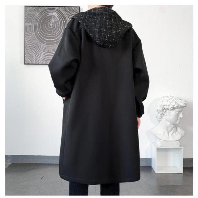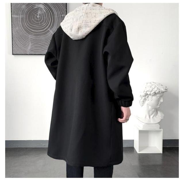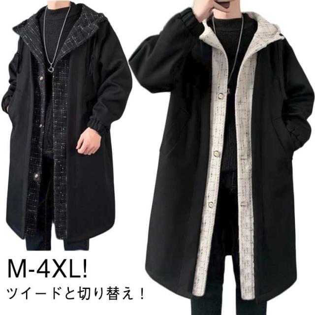 ツイード切り替え モッズコート ロングコート メンズ フェイクレイヤード ロングジャケット 裏起毛 フード付き 大きいサイズ M L XL 2XL 3XL 4XL