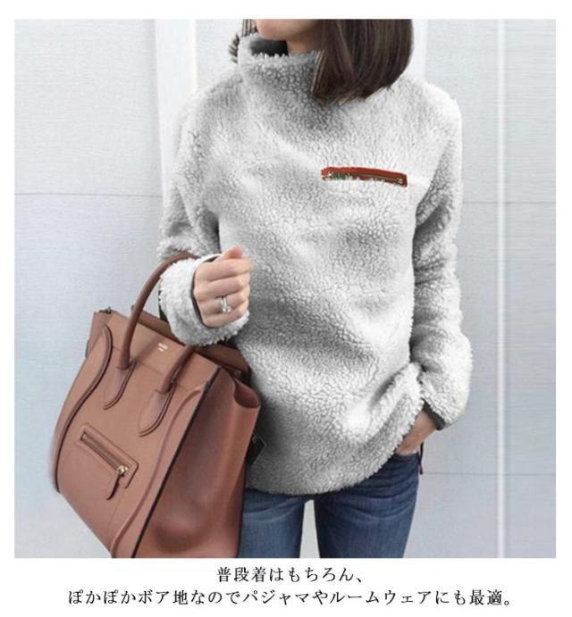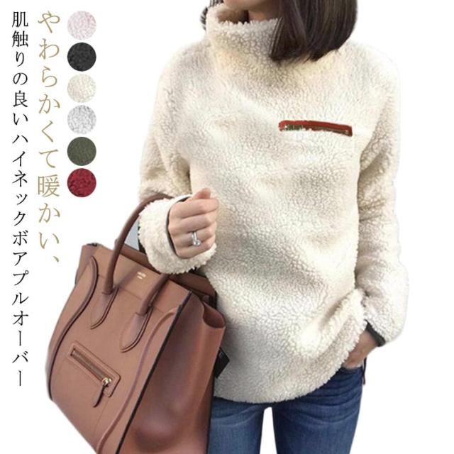 ボア プルオーバー タートルネック トップス ハイネック ボアトップス もこもこ レディース 長袖 秋冬 モコモコ トップス トレーナー 部屋着 ルームウェア プルオー 大きいサイズ あったかインナー かわいい 防寒 暖かい カジュアル ナチュラル 小顔 長袖 大人女性 送料無料