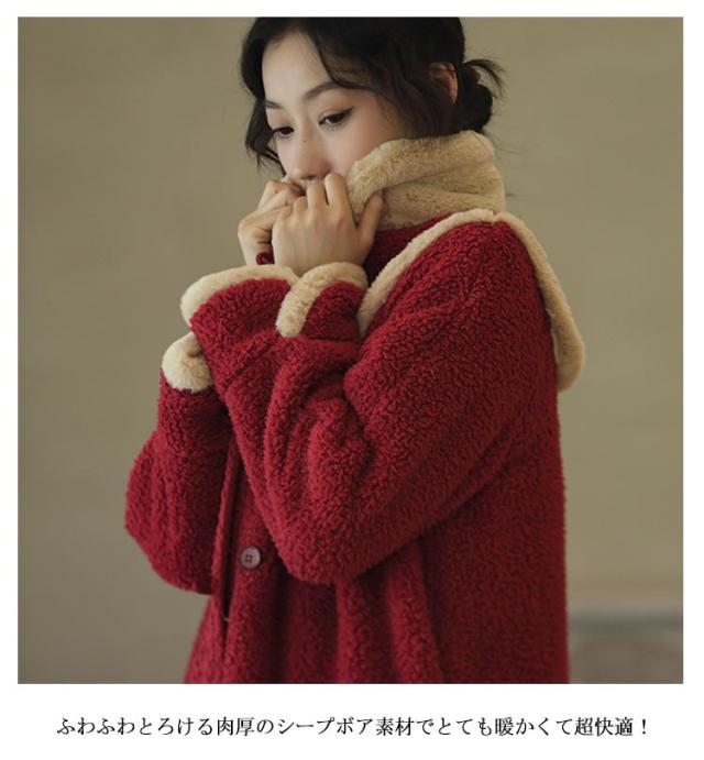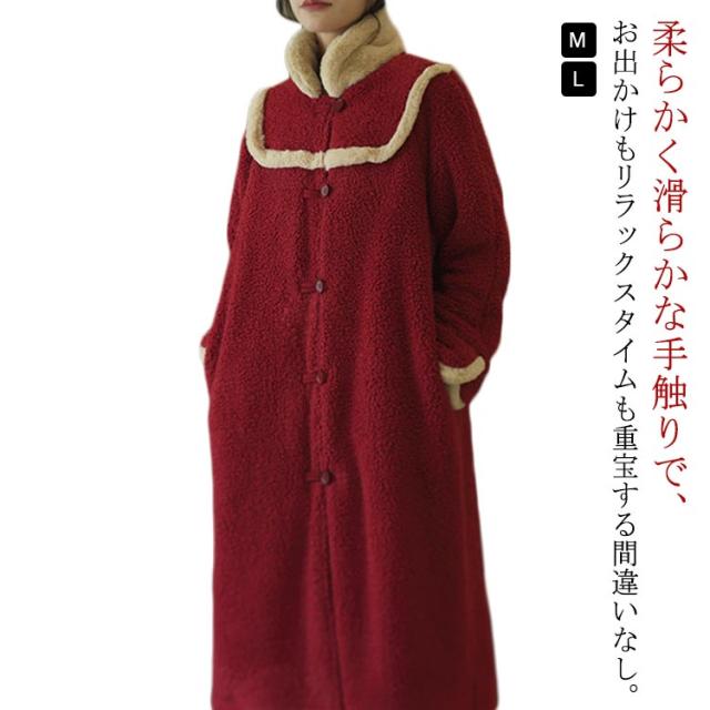 ボアワンピース ボアコート ロング丈 着る毛布 アウター ルームウェア 羽織り レディース 柔らかい シープボア ワンピース 可愛い もこもこ ふわふわ フェイクファーカラー ステンカラーコート 厚手 ソフト 防寒 寒さ対策
