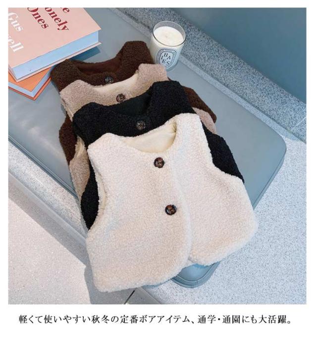 ボアベスト ベスト キッズ ボアアウター ボア 防寒ベスト アウター 中綿 ベスト ブラウン ブラック ベージュ キャメル 女の子 男の子 ベビー モコモコ もこもこ 女児 男児 冬 キッズ 上着 羽織り ショート丈 ノースリーブ 暖かい 冬 秋 防寒 通学 通園