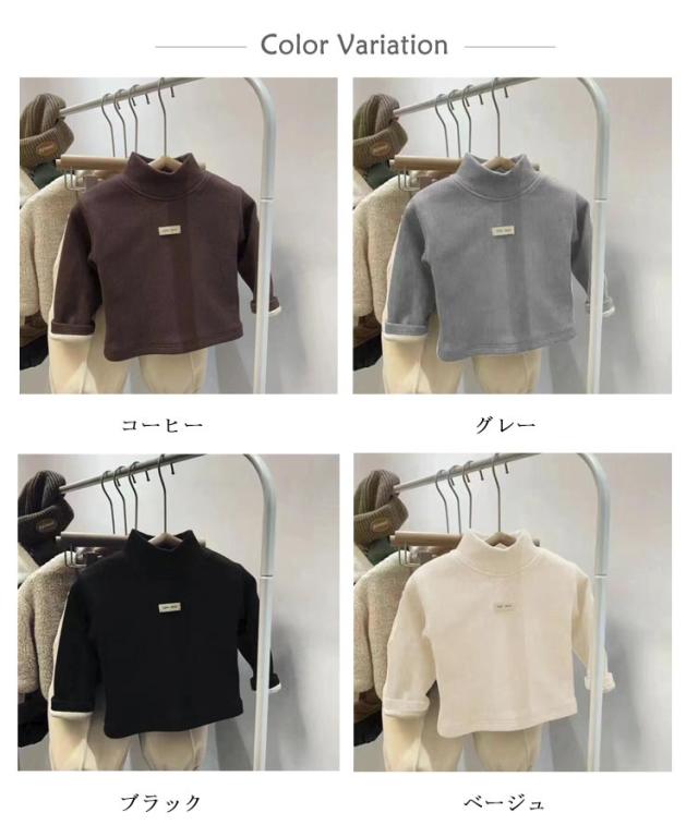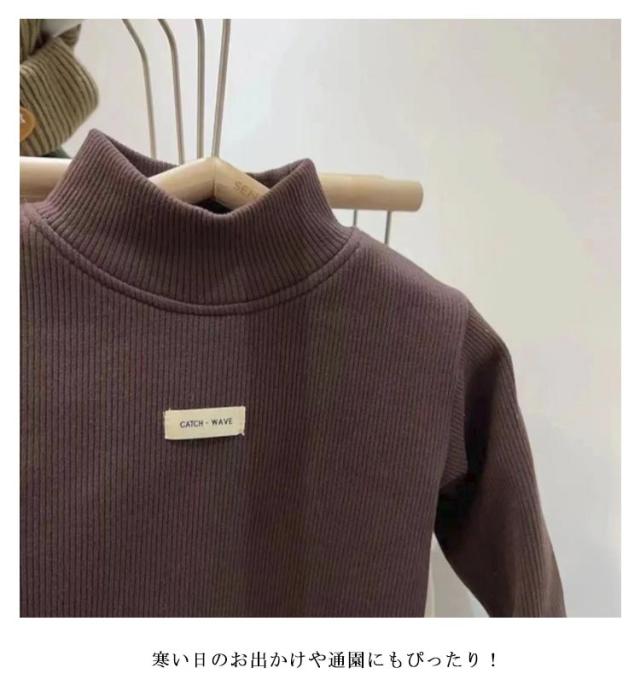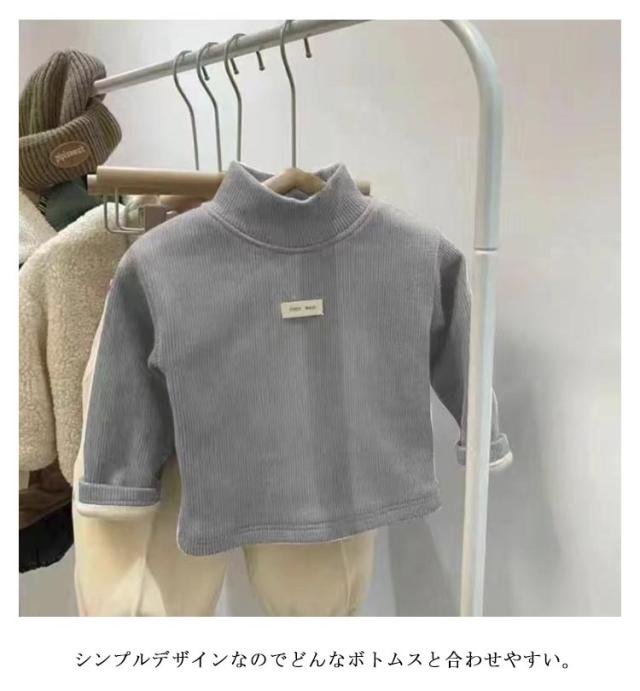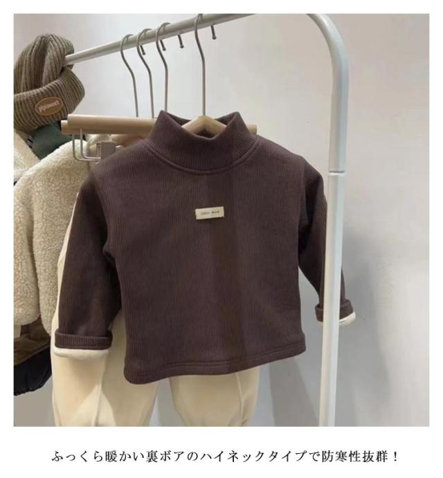 80−140cm!ベビーtシャツ 裏ボア トップス キッズ 長袖 Tシャツ ハイネック タートルネック 裏起毛 子供服 ベビー服 女の子 無地 シンプル あったか 秋冬 防寒 トップス 80 90 100 110 120 130 140cm 送料無料