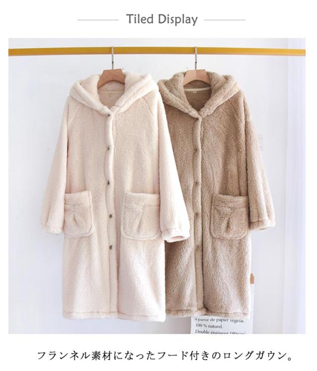 フランネル コーディガン 着る毛布 レディース 部屋着 ガウン ロング丈 暖かい 部屋着 カーディガン 厚手 ボア ポケット付き アイボリー ブラウン ナチュラル 可愛い 送料無料