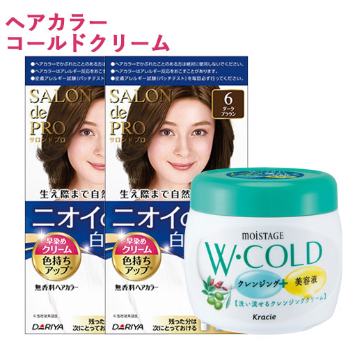 サロンドプロ 無香料ヘアカラー 早染めクリーム 白髪用 6 ダークブラウン 2個&モイスタージュ Wコールドクリーム 270g SALON de PRO ダリヤ(DARIYA) MOISTAGE クラシエ(Kracie)【送料込】