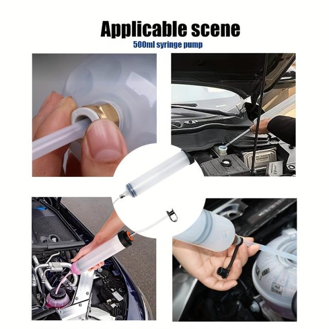 500CC マニュアルオイル&フルード移送ポンプ ホース付き - ほとんどの車種に対応する簡単なオイル交換用自動車用シリンジ
