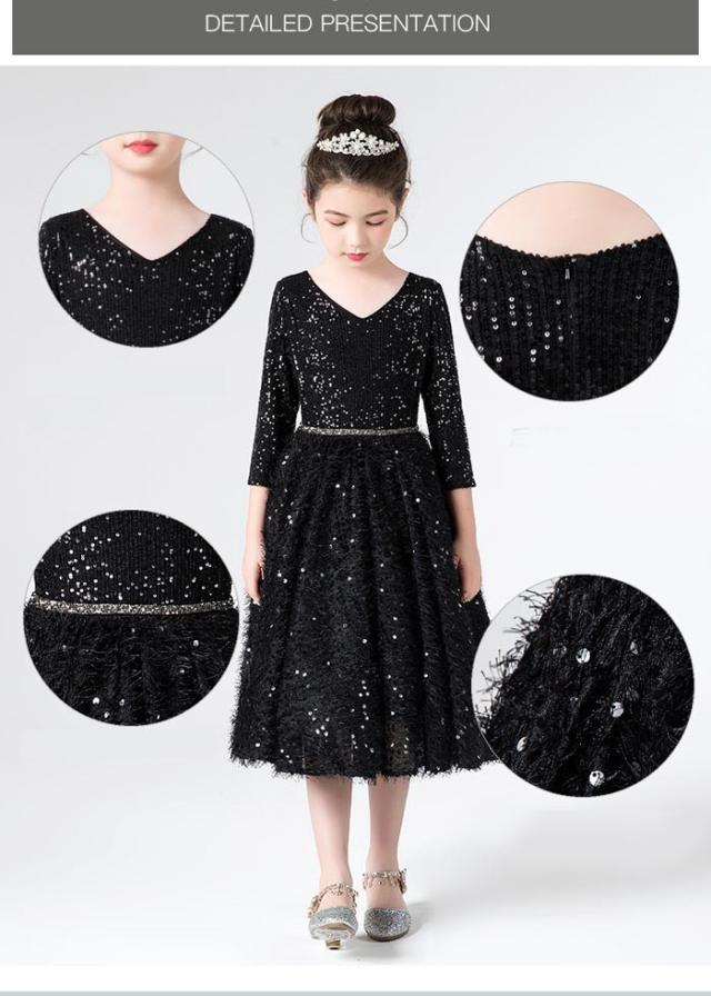 キッズドレス 子どもドレス 子供 ドレス ミディ丈 発表会ドレス ジュニア Vネック 女の子 Aラインドレス コンクール ドレス 結婚式 キッズ こども フォーマル ピアノ発表会 ジュニア キッズ