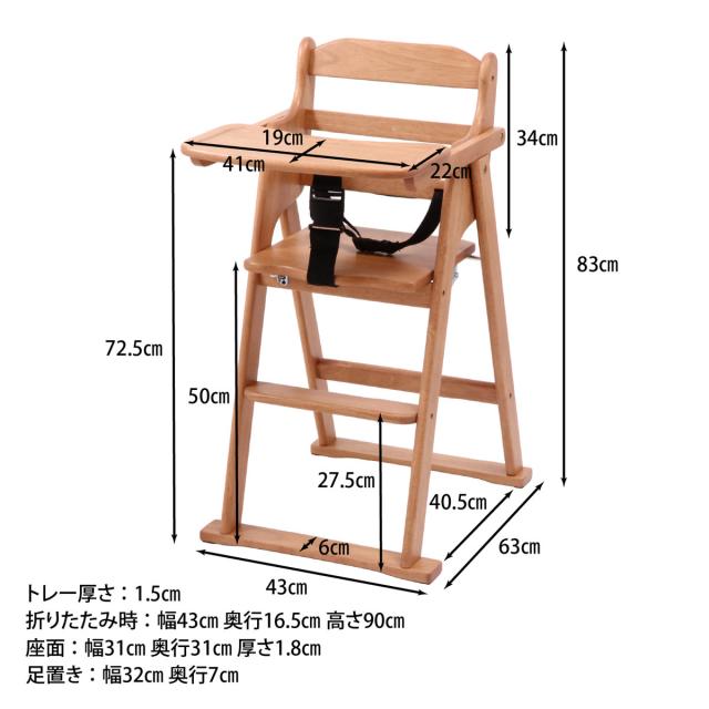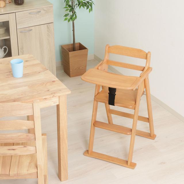 ベビーチェア 折りたたみ ベルト付 ( テーブル付き 天然木 木製 子ども ベビー ハイチェア ハイタイプ 食事 立上り防止 ナチュラル シンプル )