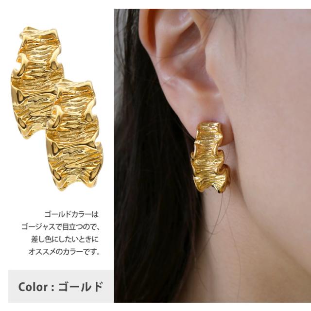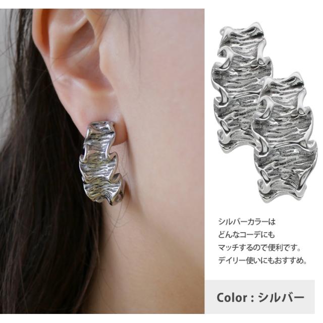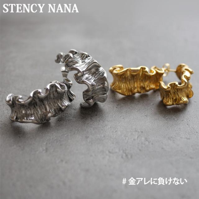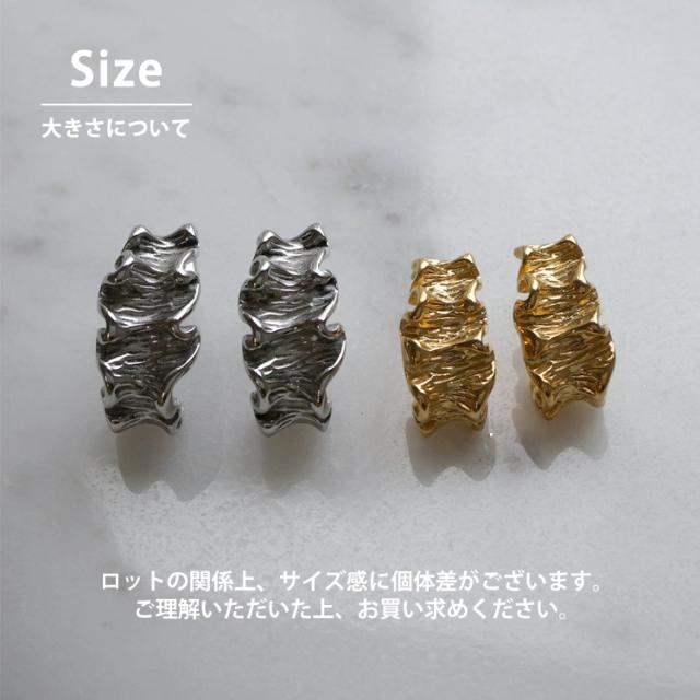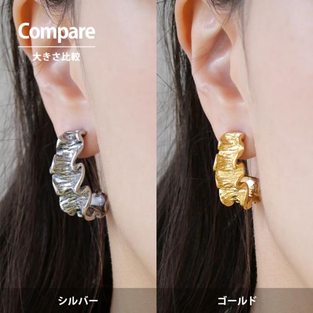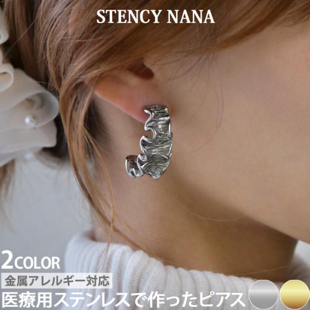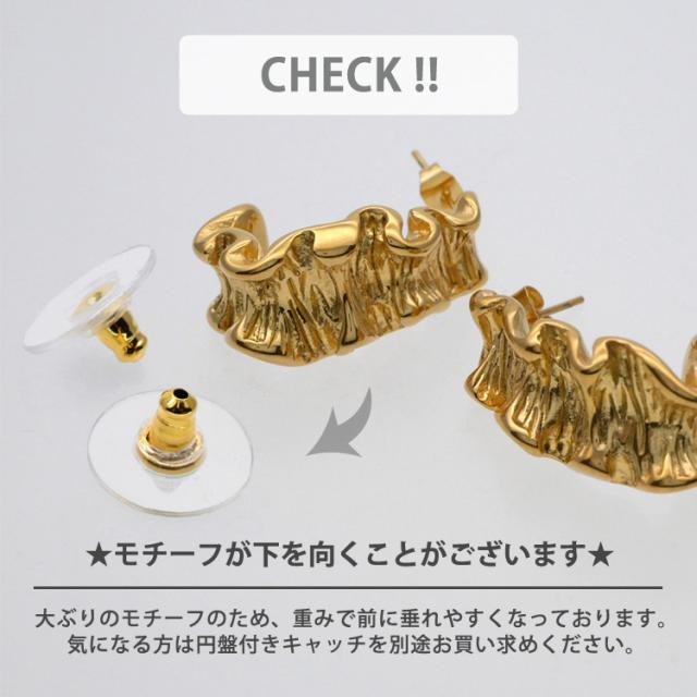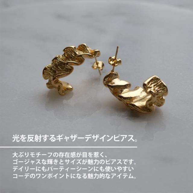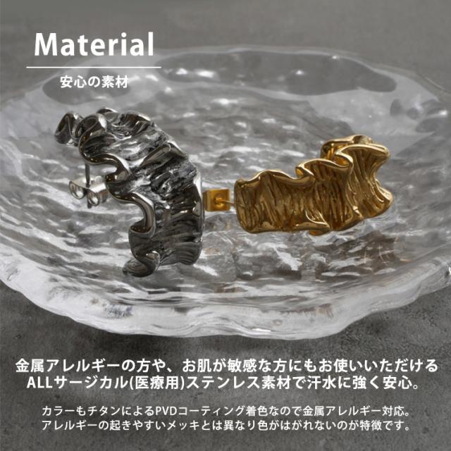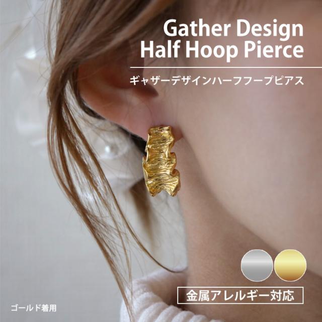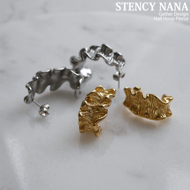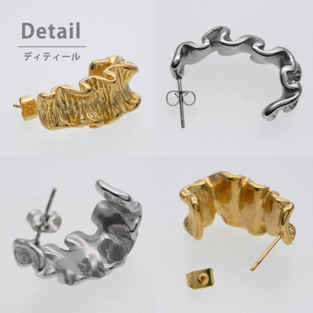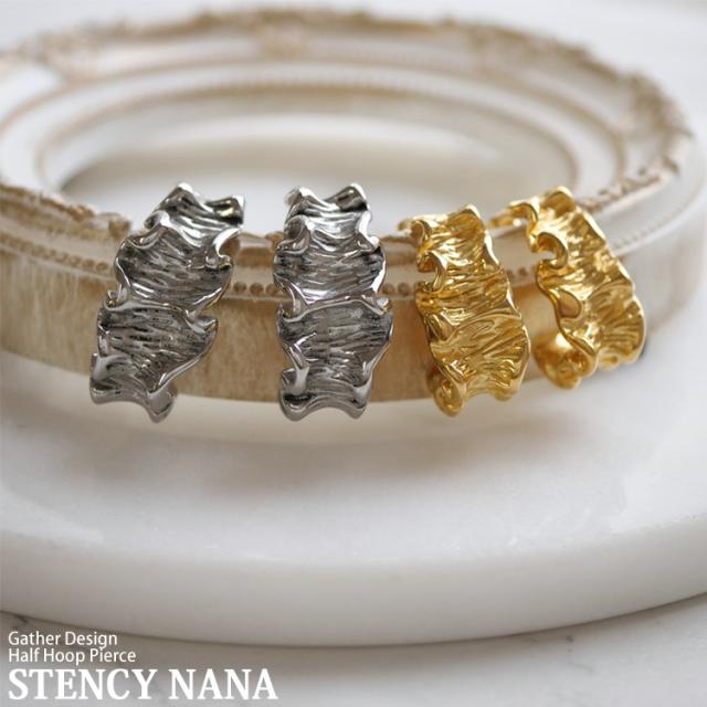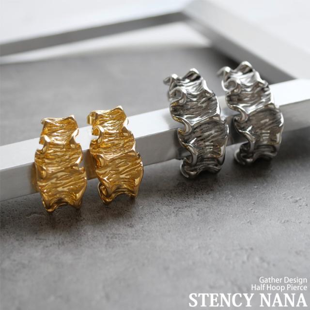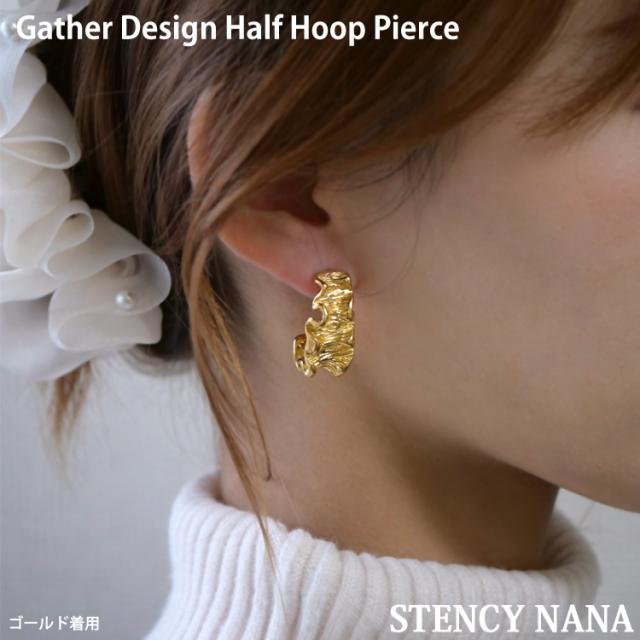 金属アレルギー対応 ステンレスピアス ギャザーデザインハーフフープピアス セカンドピアス スタッドピアス 両耳用