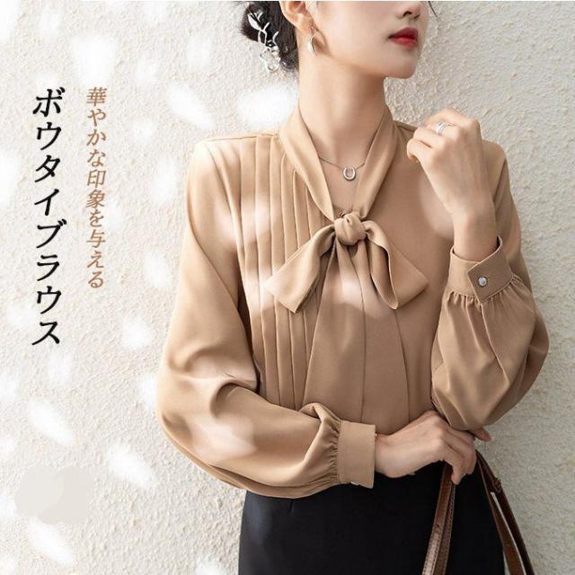 2025新作 トップス ボウタイブラウス 上品 シャツ きれいめ フォーマル リボン プリーツ シャツ ブラウス