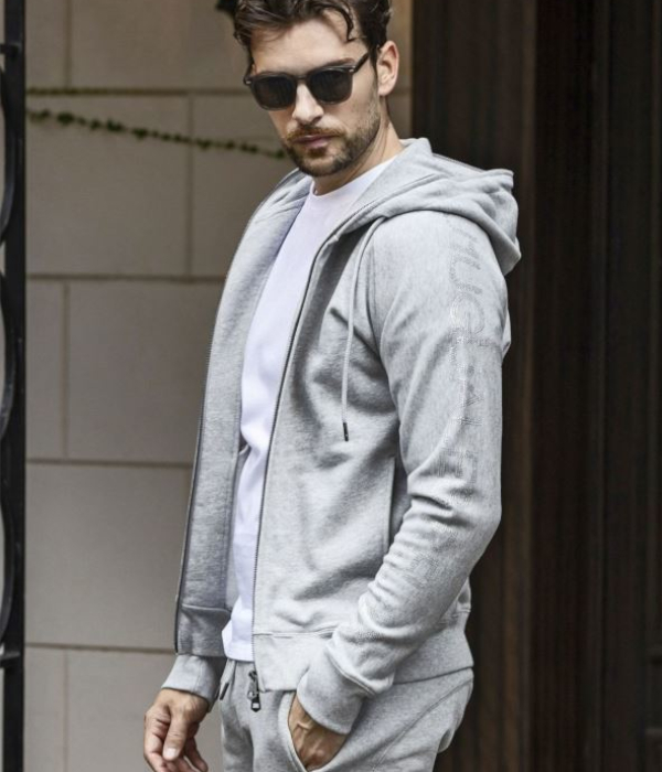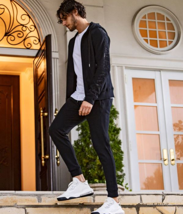 大胆にラインストーンロゴを配置しており、上品なきらめきを纏ったセットアップ。