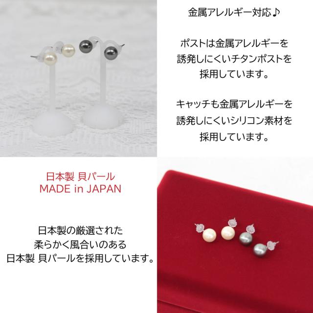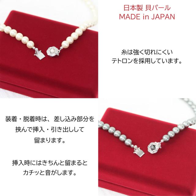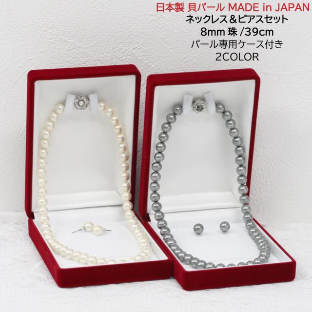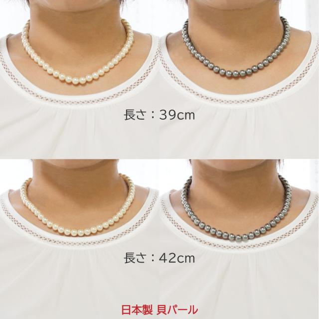 パール 真珠 ネックレス ピアス レディース アクセサリー 貝パール 白 ホワイト キスカ グレー 39cm 8mm 慶弔 兼用 フォーマル 結婚式 冠婚葬祭 葬式 葬儀