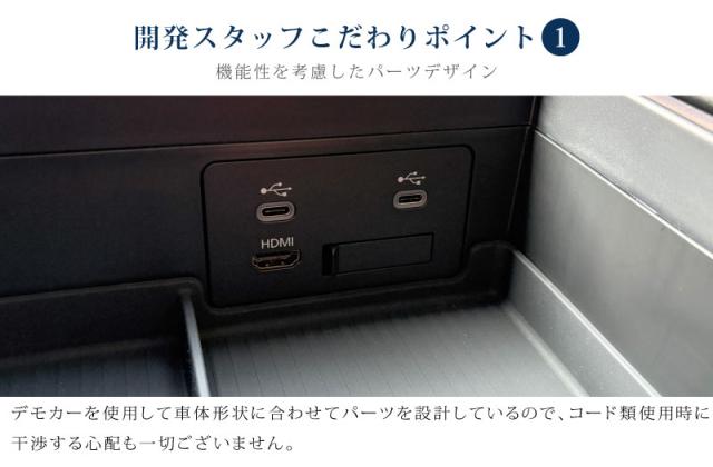 専用設計のため、各コードの挿し口をふさぐことなく、センターコンソールの開閉にも干渉しません。