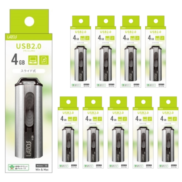 「10本セット」USBメモリ 4GB 格安スライド式 USB2.0 L-US4 LAZOS USB