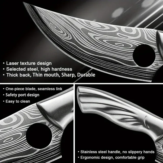 Stainless Steel Boning Knife Damascus Laser Chef Knife Meat Cutting Pig Fish Killing Knife Household Kitchen Meat Cleaver KnifeProduct details description:1. all-steel one-piece forging process, the use of chamfering technology, sharp and durable, chopping with half the effort.