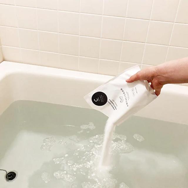 ご使用方法 1:濡らした床に、付属のスプーンで本品約40g(4杯分)を風呂床にまいてください。