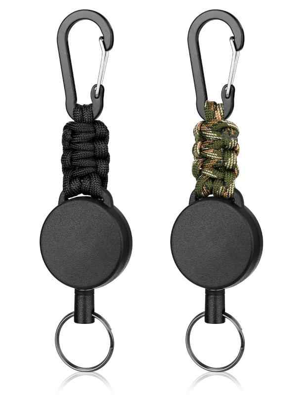 [Mellbree] リールキーホルダー カラビナ付き 2個セット 伸びるキーホルダー キーリール 軽量 頑丈 最長60CM 紛失防止 (ブラック+迷彩)