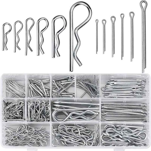【セット内容】コッターピンの品揃えには、12種類一般的に使用されるサイズのコッターピンとヘアピンが含まれております。合わせて250個のコッターピンヘアピンとRクリップファスナーを透明ボックスに梱包され、便利に素早くアクセスできます。