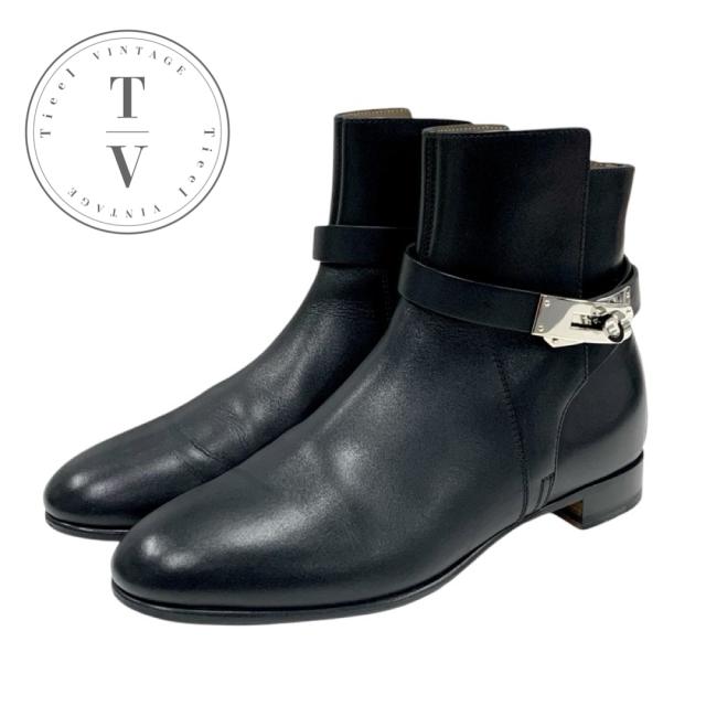 エルメス HERMES ネオ ブーツ ショートブーツ 靴 シューズ レザー ブラック 黒 シルバー ケリー金具