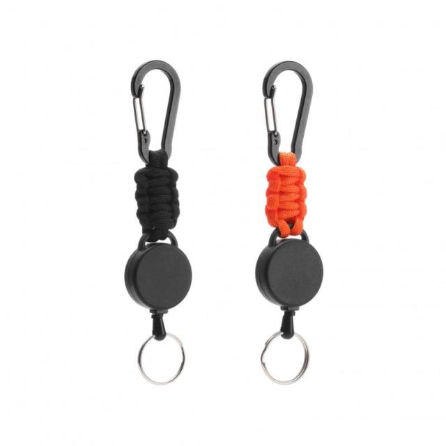【巻き取り式リールキーホルダー】セット:2点セット。カラー:ブラック*2/ブラック+オレンジ。巻取りキーホルダーにはスプリングとワイヤーが内蔵されており、最大60 cmまで延伸することができます。使用後は自動的に戻ることができ、簡単に鍵を取り出すことができます。