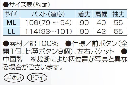 ●仕様/前ボタン(全開1個、比翼ボタン9個)、左右ポケット