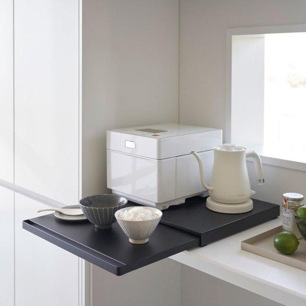 ●家電下に便利な作業スペースができるキッチンスライドテーブル。