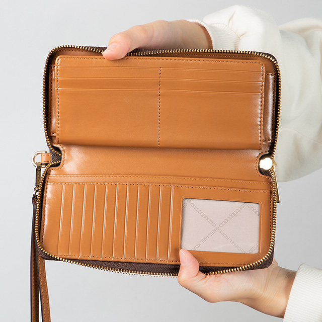 | 仕様 | 札入れ仕切:1 小銭入れ開閉:ファスナー式 小銭入れ仕切:無 カード入れ×16 定期入れ×1 ポケット×4 開閉:ラウンドファスナー式 付属品:ストラップ×1(着脱可/長さ18.5cm) |