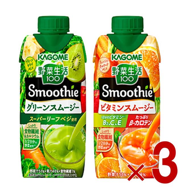 カゴメ 野菜生活100 スムージー 2種 アソート セット グリーンスムージー ビタミンスムージー 330ml smoothie 砂糖不使用 各3個